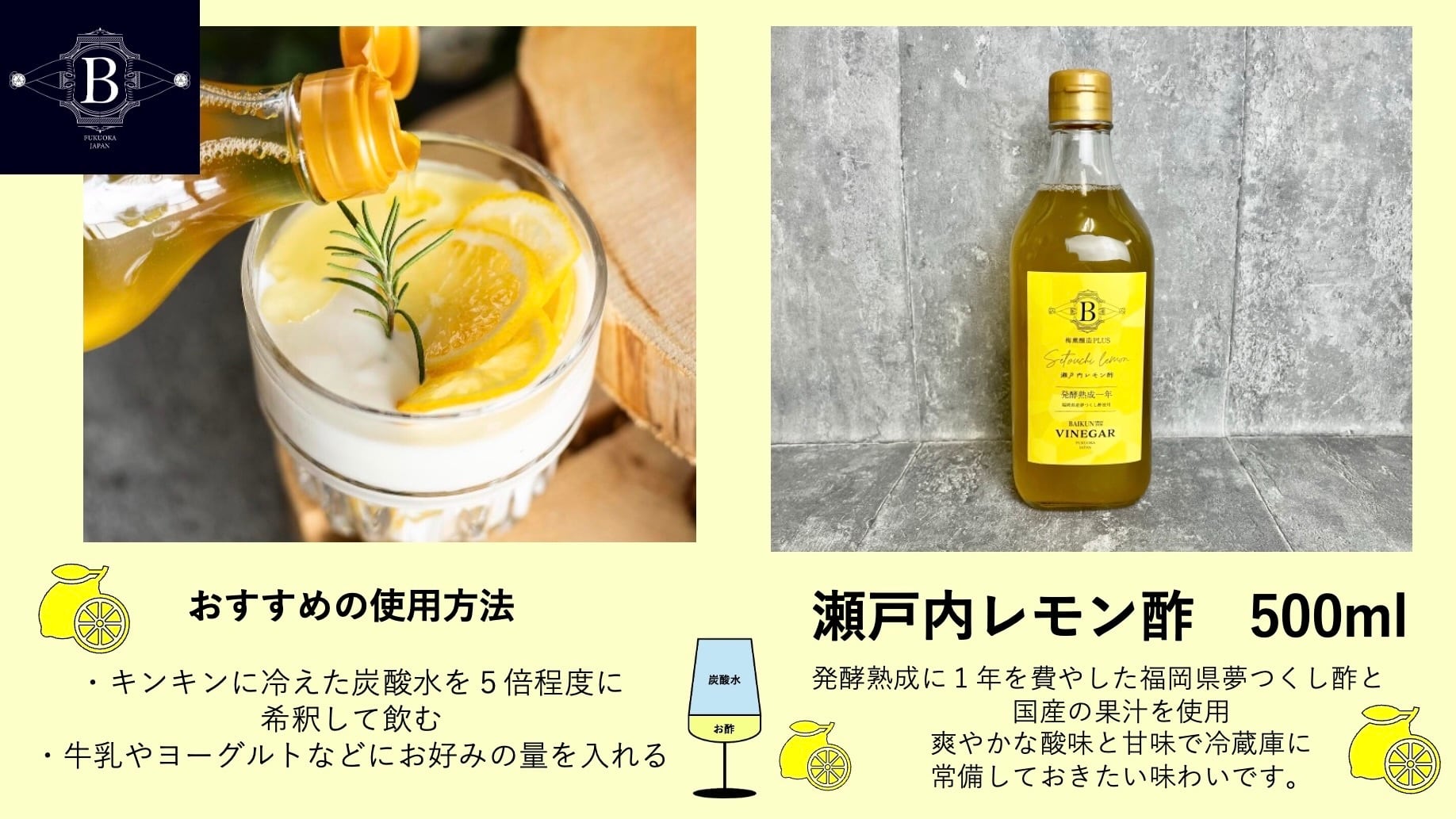瀬戸内レモンを使用しお子様でも飲めるように仕上げました。牛乳、炭酸水、ビールなどお好みに合わせて希釈してお召し上がりください。