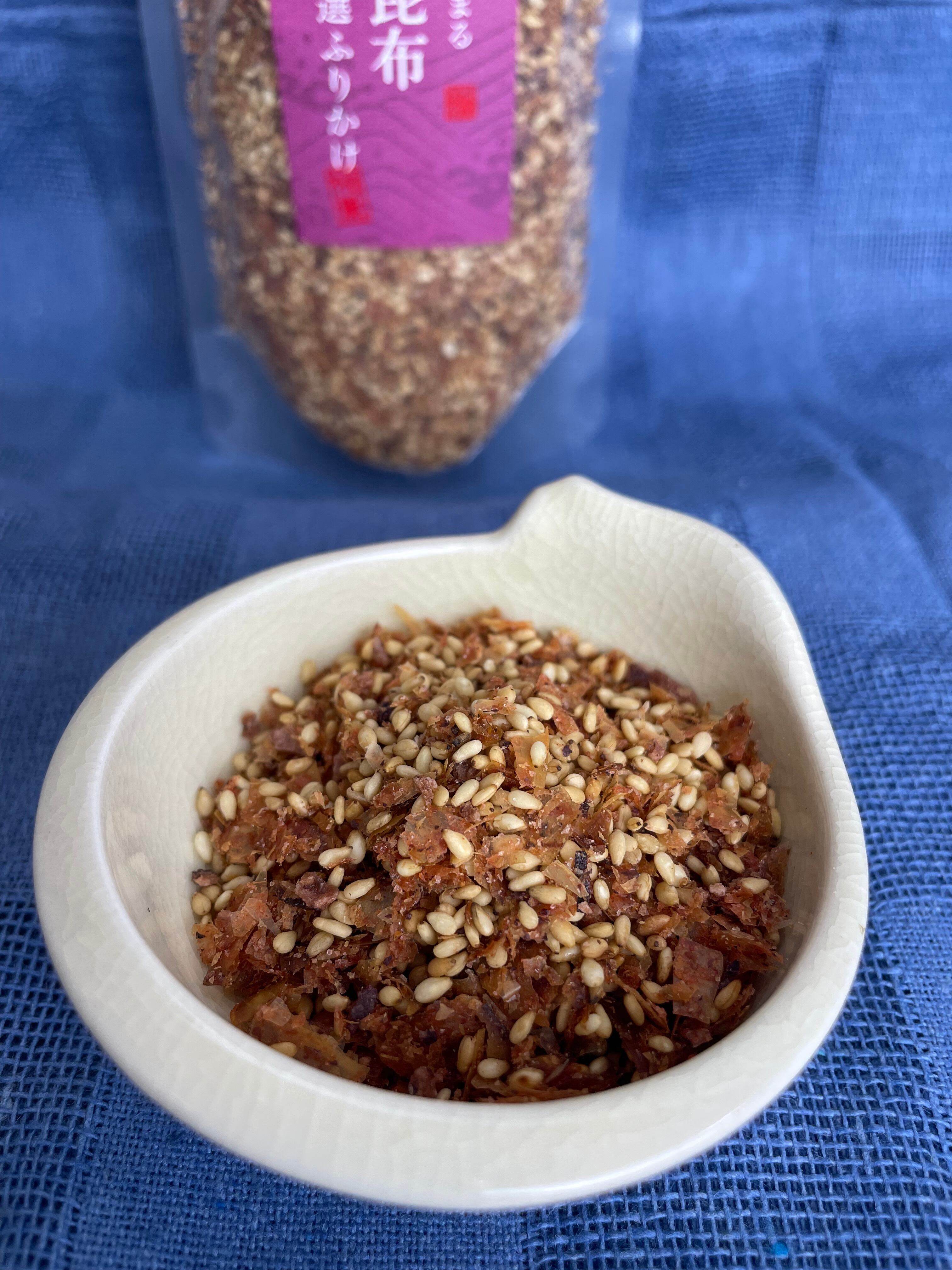 白いり胡麻、鯖削り節、食塩、醤油、醸造調味料、でん粉、梅肉、しそ、昆布、乳糖、砂糖、調味料(アミノ酸等)、甘味料(甘草、ステビア)、卵殻カルシウム、酸化防止剤(V,E)、香料、着色料(紅花黄、クチナシ)、(一部に小麦・大豆・鯖・乳成分を含む)