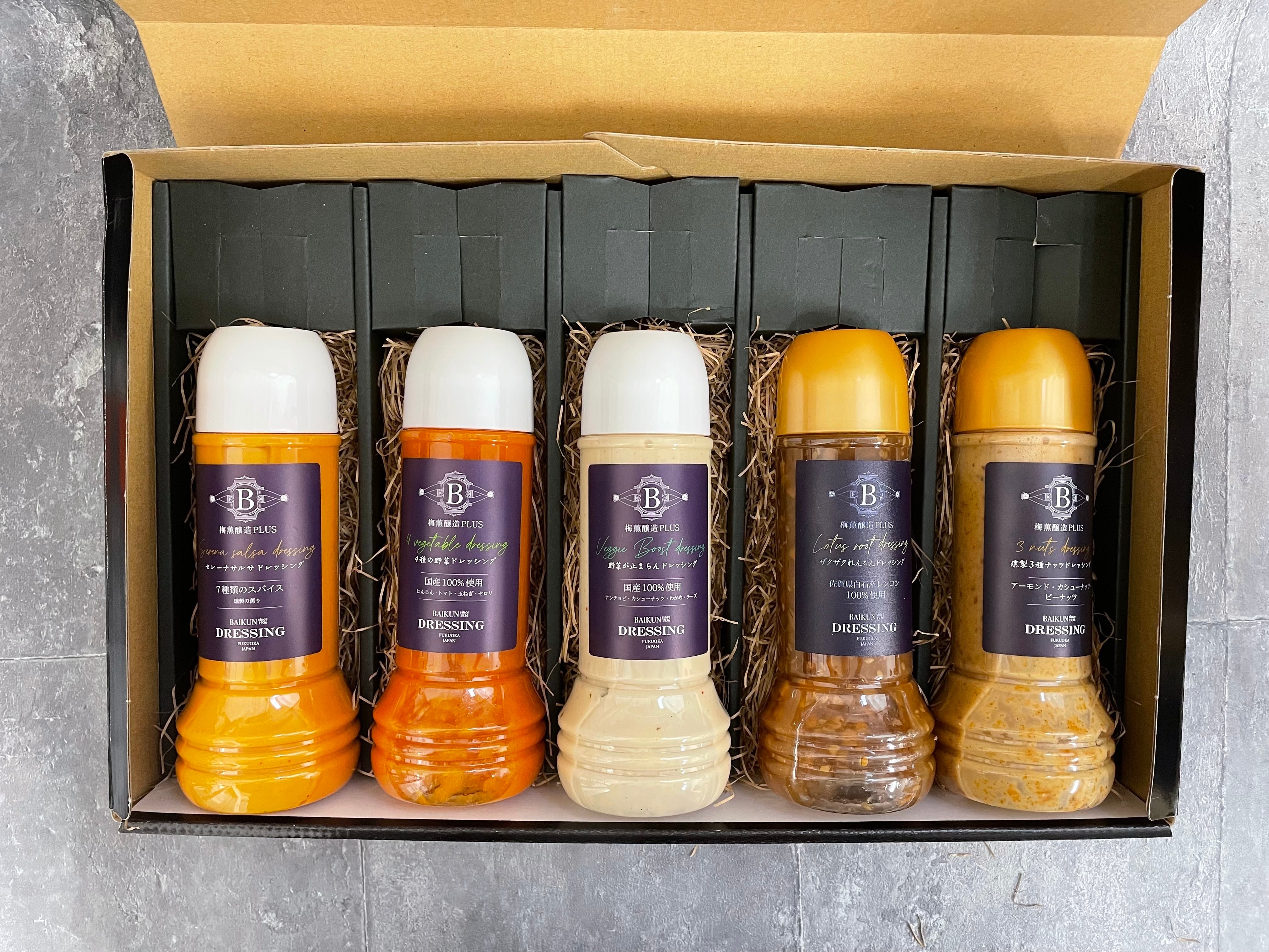 セレーナサルサドレッシング・4種の野菜ドレッシング・野菜が止まらないドレッシング・ザクザクれんこんドレッシング・燻製3種ナッツドレッシングの5本セット!