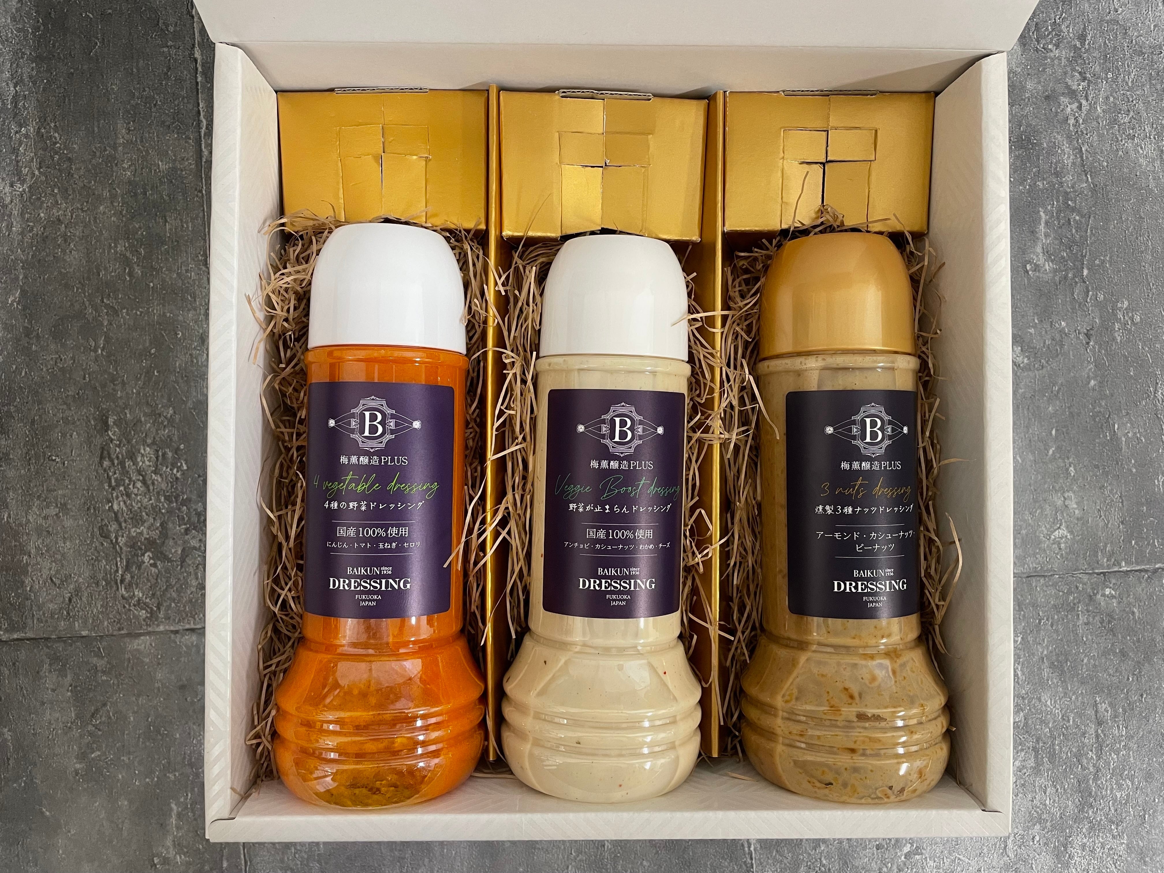 4種の野菜ドレッシング・野菜が止まらないドレッシング・燻製3種ナッツドレッシングの3本セット!