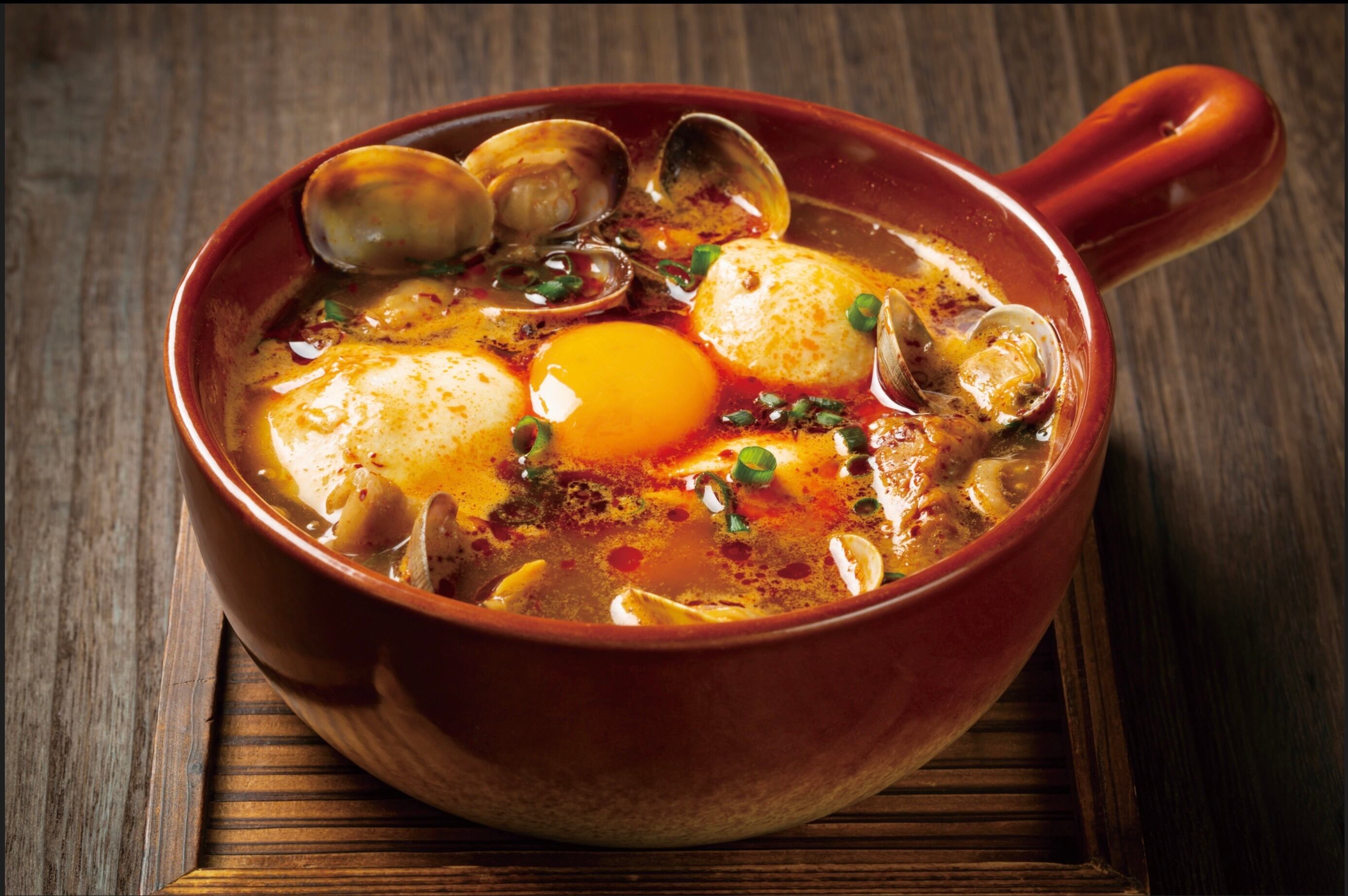 あさりエキスと魚介エキスの効いたスンドゥブの素です。九州味噌をベースにスパイスと胡麻の香りが絶妙な食欲をそそります。是非ご賞味を。